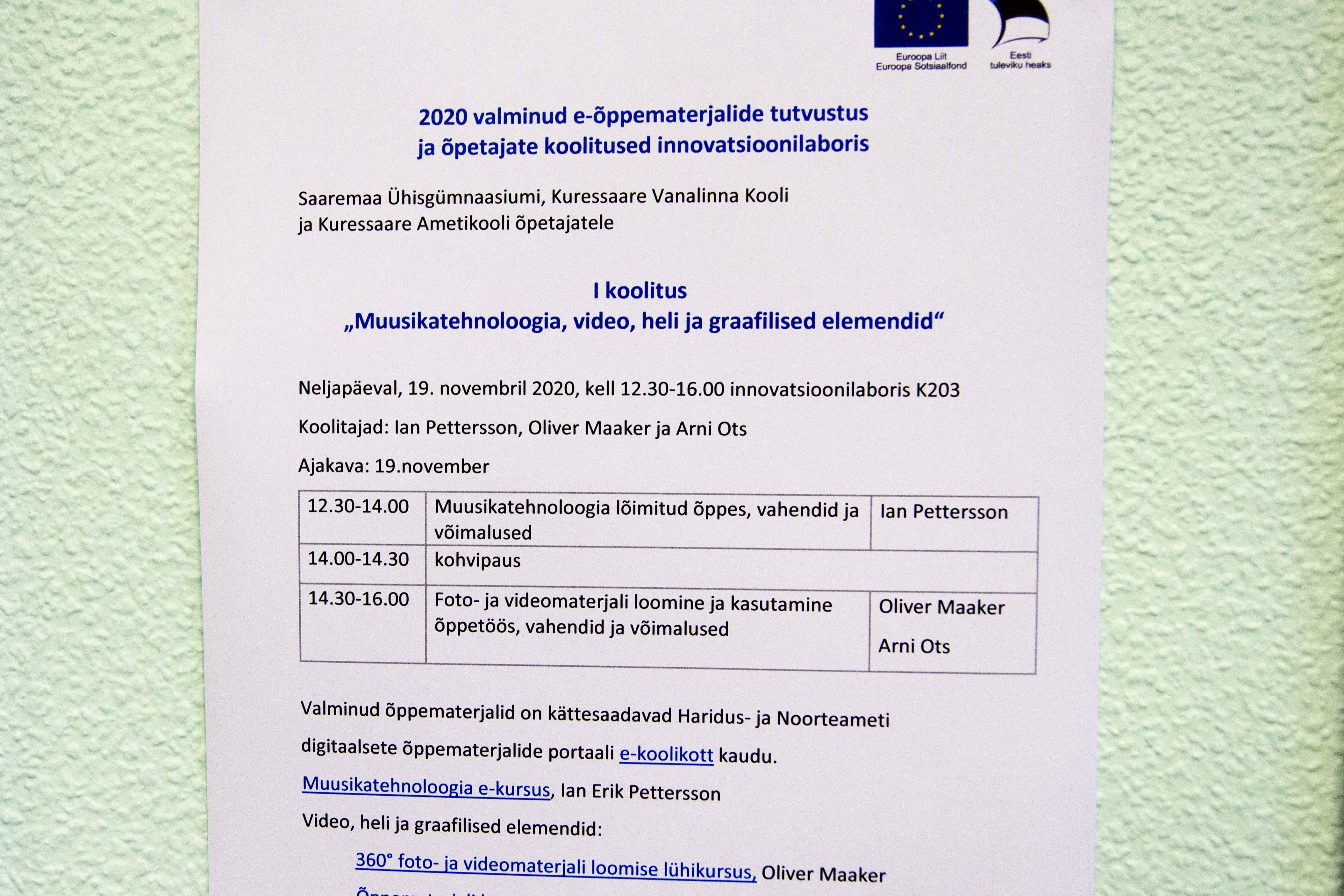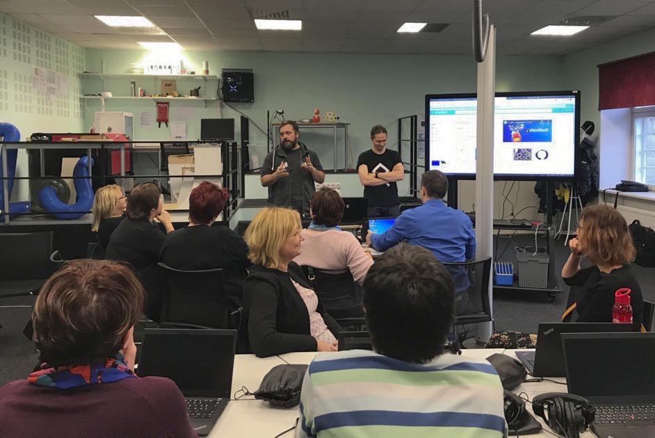 Innovatsioonilabori partneriteks on Saaremaa Ühisgümnaasium ja Kuressaare Vanalinna Kool. Esitlusel-koolitusel oli osalejaid kõikidest partnerkoolidest.